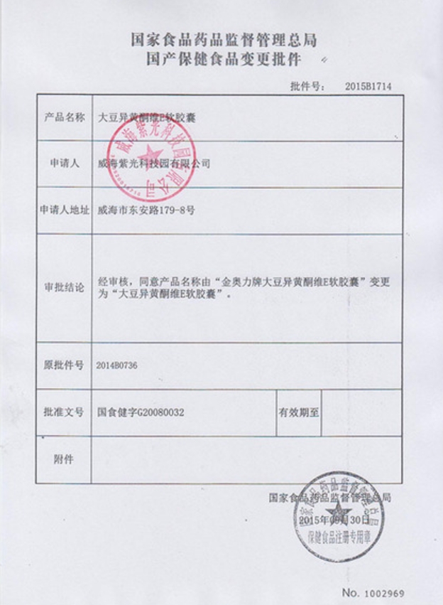 威海紫光金奧力牌大豆異黃酮維E軟膠囊50g(500mg*100粒)裝的在市面上存在兩個不同顏色包裝,“白色”對應(yīng)的條形碼為“6939910855056”,“粉紅色”對應(yīng)的條形碼為“6939910834266”,不同顏色包裝隨機(jī)發(fā)貨。