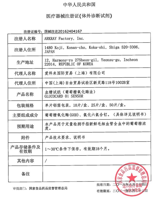 生產(chǎn)廠商名稱(英文) ARKRAY Factory,Inc.