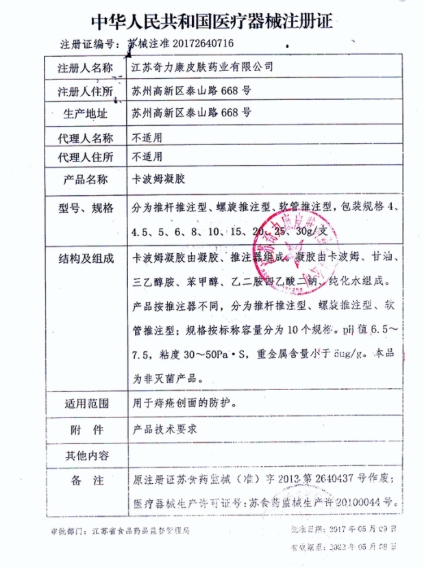 卡波姆凝膠(痔康)用于痔瘡創(chuàng)面愈合,緩解內(nèi)痔、混合痔引起的肛門墜脹痛、粘膜充血、便血的癥狀。每晚睡前使用一支。也可直接涂于肛周,反復(fù)按摩吸收。