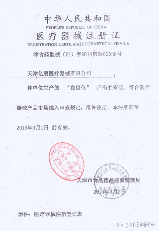 血糖儀主要由電路板、功能按鈕、液晶顯示屏、測(cè)試條插入口、外殼、顯示窗口、電池及電池蓋組成。主要性能指標(biāo)見附頁,其他性能指標(biāo)詳見注冊(cè)產(chǎn)品標(biāo)準(zhǔn)YZB/津1194-2014《血糖儀》。