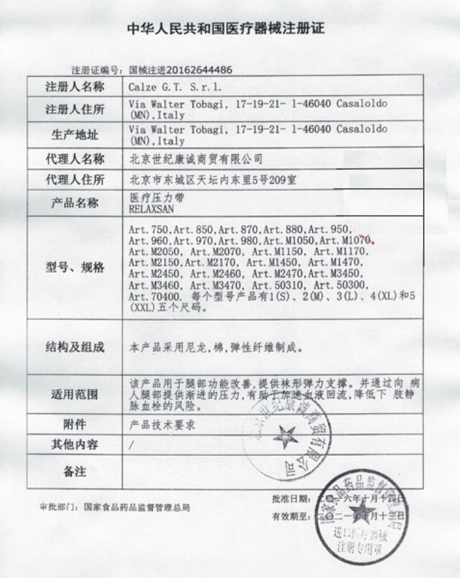 注冊(cè)證號(hào):國(guó)械注進(jìn)20162644486批件 生產(chǎn)廠家:意大利Calze G.T. S.r.l./代理人名稱:北京世紀(jì)康誠(chéng)商貿(mào)有限公司