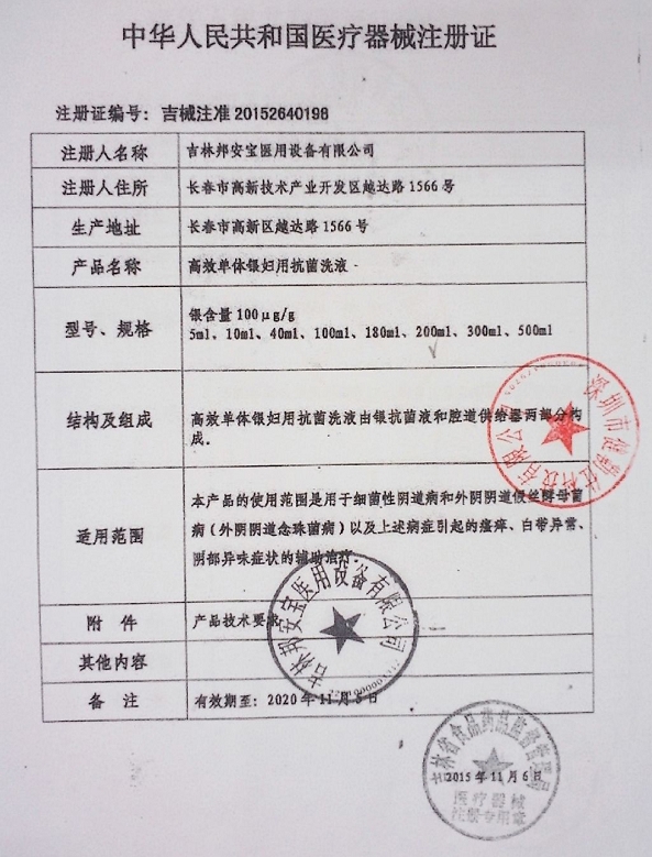 高效單體銀婦用抗菌洗液由銀抗菌液和腔道供給器兩部分構(gòu)成。是一種棕黃色或無色、無刺激、無致敏、PH值在5.0-8.0之間的透明液體。本產(chǎn)品的適用范圍是用于細(xì)菌性陰道病和外陰陰道假絲酵母菌病(外陰陰道念珠菌病)以及上述病癥引起的瘙癢、白帶異常、陰部異味等癥狀的治療。