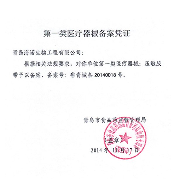 壓敏膠帶(海氏海諾)具有粘附力強(qiáng),易揭脫的性能。用于一般外科手術(shù)絆創(chuàng),敷料和導(dǎo)管固定。使用前先清潔部位,蓋上醫(yī)用紗布等敷料,再貼上固定即可。