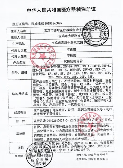 德爾DRW型胃管DRW-B 16F由醫(yī)用高分子、不銹鋼導(dǎo)絲等材料制成。主要由接頭、三腔接頭、堵頭、胃管、咬口器、口咽通氣道、一次性使用手套、喂食袋、導(dǎo)絲、導(dǎo)絲接頭和腸營養(yǎng)管等組成。適用于胃腸減壓、洗胃、鼻飼及胃液提取等。