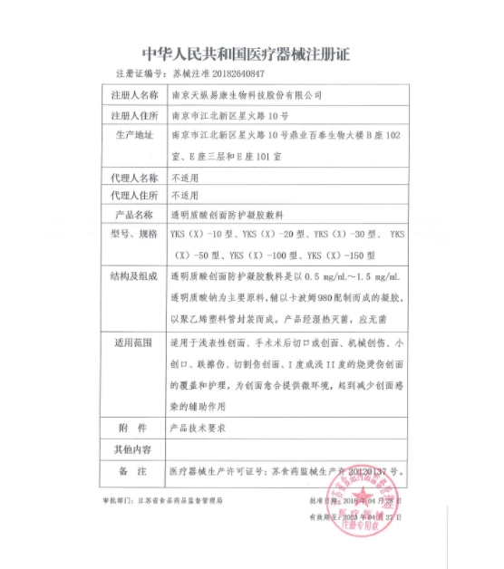 透明質(zhì)酸創(chuàng)面防護(hù)凝膠敷料(益膚)適用于淺表性創(chuàng)面、手術(shù)術(shù)后切口或創(chuàng)面、機(jī)械創(chuàng)傷、小創(chuàng)口、跌擦傷、切割傷創(chuàng)面、I度或淺II度的燒燙傷創(chuàng)面的覆蓋和護(hù)理,為創(chuàng)面愈合提供微環(huán)境,起到減少創(chuàng)面感染的輔助作用。