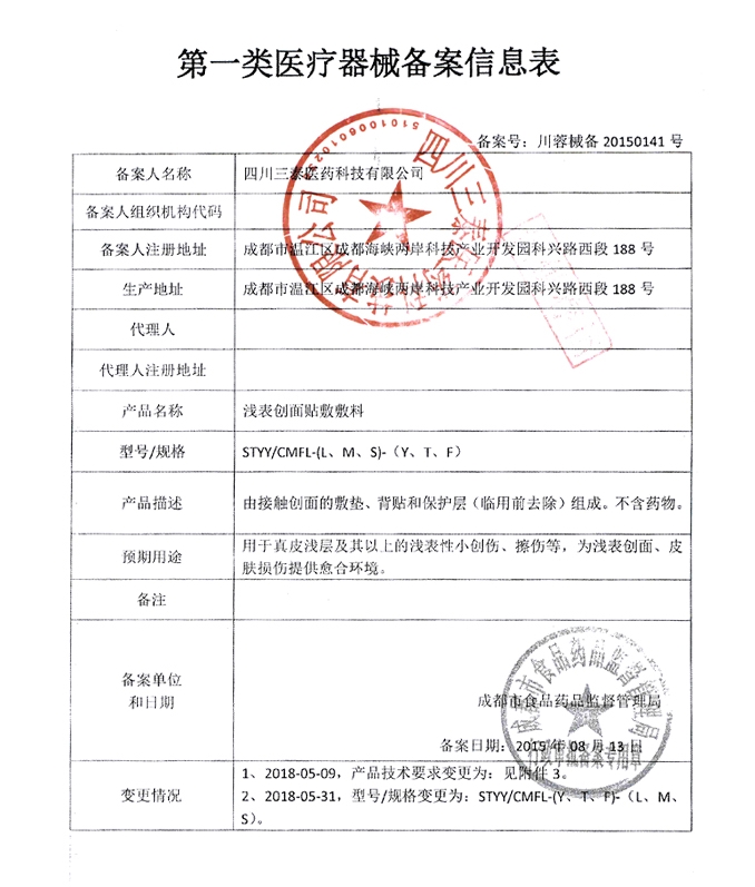 淺表創(chuàng)面貼敷料(活玉)用于真皮淺表層及其以上的淺表性小創(chuàng)傷、擦傷等,為淺表創(chuàng)面、皮膚損傷提供愈合環(huán)境。使用前應清潔使用部位并保持干燥,以增強本產(chǎn)品的粘性。若出現(xiàn)敷貼處皮膚不適,紅腫,疼痛或痛癢,請立即停止使用,或請遵醫(yī)囑使用。