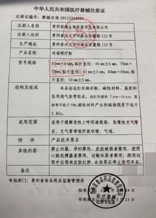 可孚咳喘理療貼由遠(yuǎn)紅外納米粉、磁性材料、基質(zhì)和醫(yī)用透氣膠帶組成。遠(yuǎn)紅外波長7μm~14μm,發(fā)射率不低于70%,磁性材料產(chǎn)生的磁場強(qiáng)度不低于2.5Gs。適用于緩解急性上呼吸道感染、急慢性支氣管炎、支氣管炎所致咳嗽、氣喘。