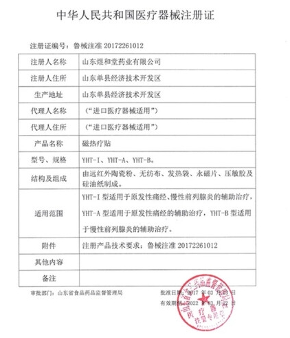 宏米磁熱療貼(慢性前列腺腺炎)由遠(yuǎn)紅外陶瓷粉、無(wú)紡布、發(fā)熱袋、永磁片、壓敏膠及硅油紙制成。適用于慢性前列腺炎的輔助治療。清潔患處,確認(rèn)包裝無(wú)破損后,打開(kāi)包裝,取出,將貼劑的隔離膜撕去,貼于患處,每24小時(shí)更換一次。