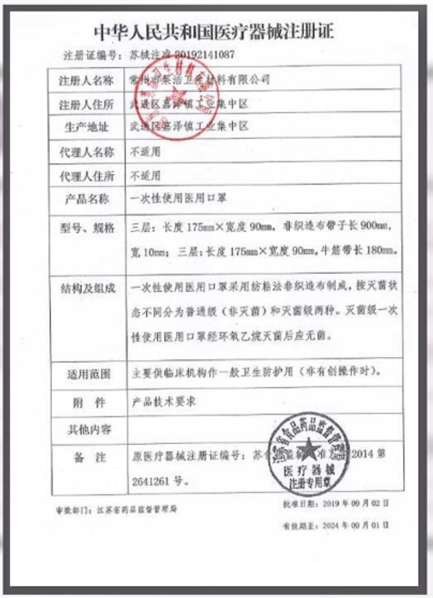如爵一次性使用醫(yī)用口罩采用紡粘法非織造布制成,按滅菌狀態(tài)不同分為普通級(jí)(非滅菌)和滅菌級(jí)兩種。滅菌級(jí)產(chǎn)品經(jīng)環(huán)氧乙烷滅菌后應(yīng)無菌。主要供臨床機(jī)構(gòu)作一般衛(wèi)生防護(hù)用(非有創(chuàng)操作時(shí))。