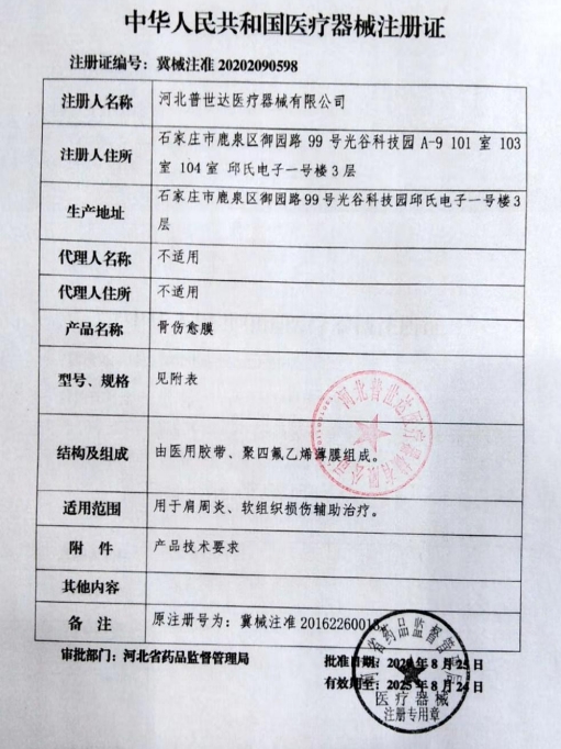 歐眾源骨傷愈膜由醫(yī)用膠帶、聚四氟乙烯薄膜組成。用于肩周炎、軟組織損傷輔助治療。外用,貼患處。將患處皮膚表面洗凈,擦干,揭開覆蓋在貼劑上的醫(yī)用膠帶,對(duì)準(zhǔn)疼痛處貼敷,24小時(shí)更換一次。過(guò)敏體質(zhì)、兒童慎用。