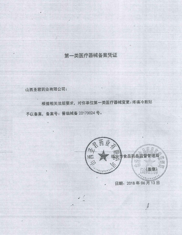 注冊證號:晉臨械備20170024號批件 生產(chǎn)廠家:山西圣君藥業(yè)有限公司