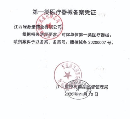 摘要:山東盛凱源藥業(yè)有限公司噴劑敷料(魯濟械備20190023號)是經(jīng)濟南市行政審批服務(wù)局備案的一類醫(yī)療器械(不是藥
