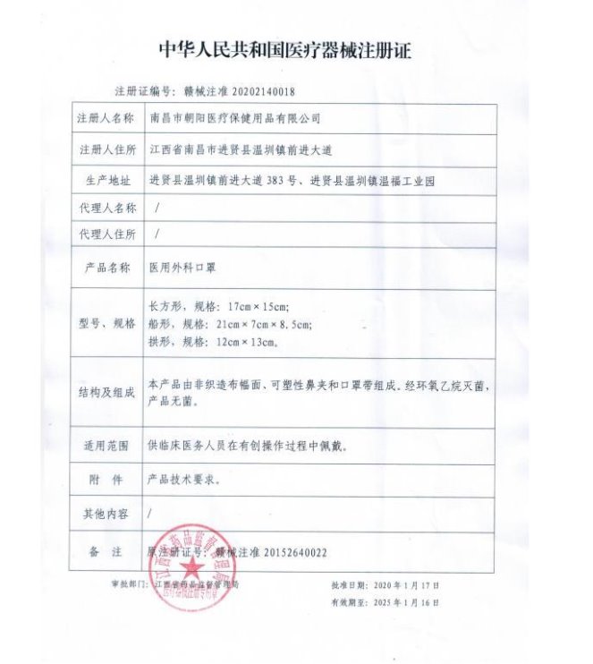 更多相關(guān):醫(yī)用外科口罩 朝伊康 南昌市朝陽(yáng)醫(yī)療