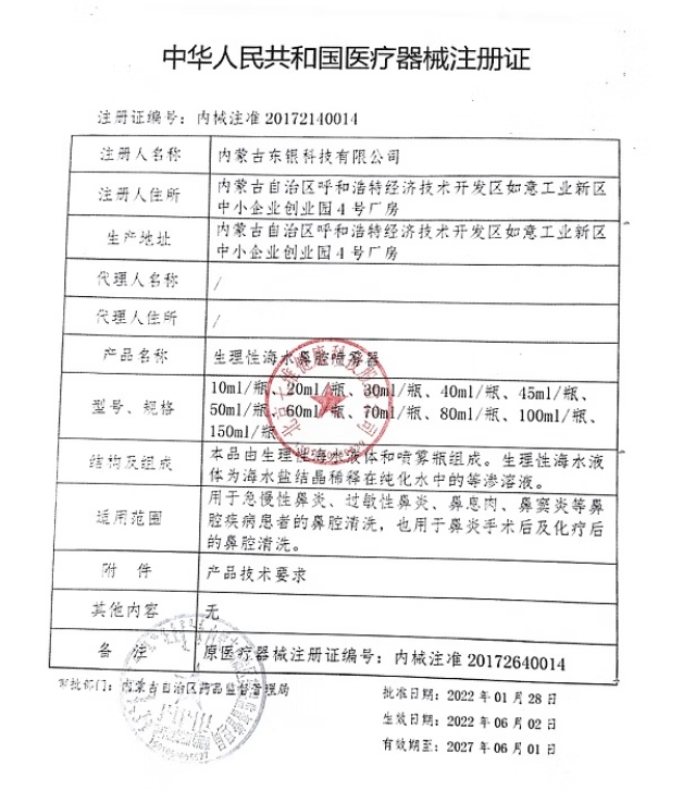 生理性海水鼻腔噴霧器(諾鼻康/景潤(rùn))由生理性海水液體和噴霧瓶組成。生理性海水液體為海水鹽結(jié)晶稀釋在純化水中的等滲溶液。適用于鼻腔干燥、鼻塞、鼻癢、流涕等鼻腔不適癥狀,也可用于鼻腔的日常衛(wèi)生護(hù)理。