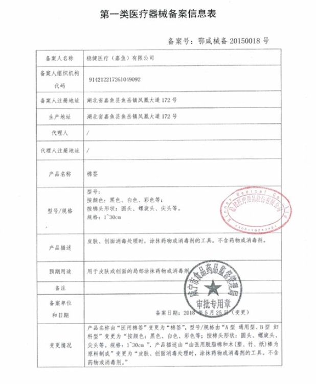 穩(wěn)健醫(yī)療棉簽由醫(yī)用脫脂棉和木(塑、竹、紙)棒為原料制成,用于皮膚或創(chuàng)面的局部涂抹藥物或消毒劑。本品為普通級,未滅菌,使用者可根據(jù)用途決定是否滅菌后使用。
