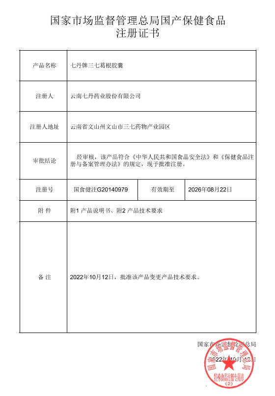 七丹牌三七葛根膠囊保健功能:本品經(jīng)動物實驗評價,具有對化學性肝損傷有輔助保護功能的保健功能;適宜人群:有化學性肝損傷危險者;不適宜人群:少年兒童、孕婦、乳母。每日2次,每次2粒,口服。