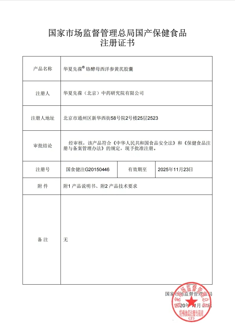 華夏先葆鉻酵母西洋參黃芪膠囊保健功能:輔助降血糖;適宜人群:血糖偏高者;不適宜人群:少年兒童、孕婦、乳母。每日2次,每次3粒,口服。本品不能代替藥物。