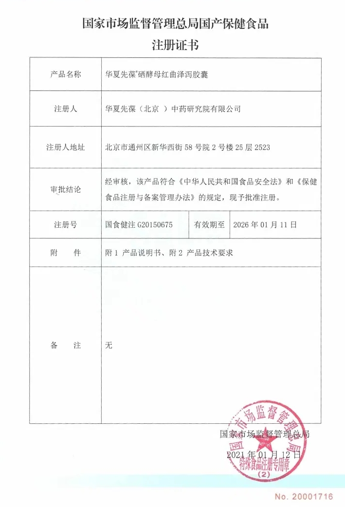 批準(zhǔn)文號(hào):國(guó)食健注G20150675批件 生產(chǎn)廠家:華夏先葆(北京)中藥研究院有限公司