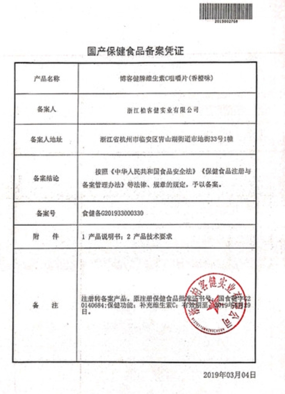 復(fù)盛公博客健牌維生素C咀嚼片(香橙味)保健功能:補(bǔ)充維生素C;適宜人群:需要補(bǔ)充維生素C的4-17歲人群及成人、孕婦、乳母;不適宜人群:3歲以下人群。每日1次,每次1片,食用方法:嚼服。本品不能代替藥物。