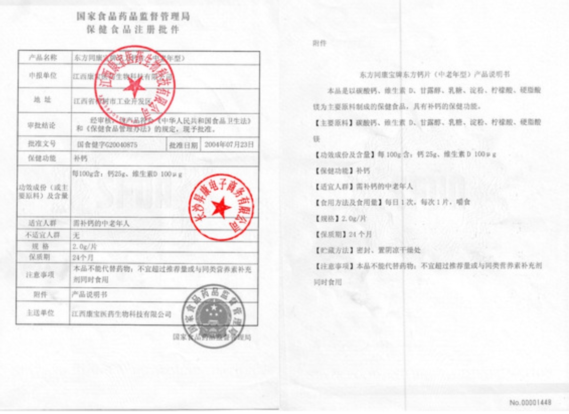 資坊堂東方同康寶牌東方鈣片(中老年型)保健功能:補(bǔ)鈣;適宜人群:需補(bǔ)鈣的中老年人;不適宜人群:無(wú)。每日1次,每次1片,嚼食。本品不能代替藥物;不宜超過(guò)推薦量或與同類(lèi)營(yíng)養(yǎng)素補(bǔ)充劑同時(shí)食用。