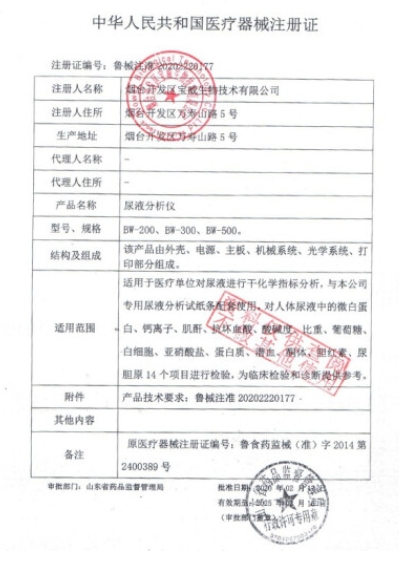 注冊證號:魯械注準20202220177批件 生產(chǎn)廠家:煙臺開發(fā)區(qū)寶威生物技術有限公司