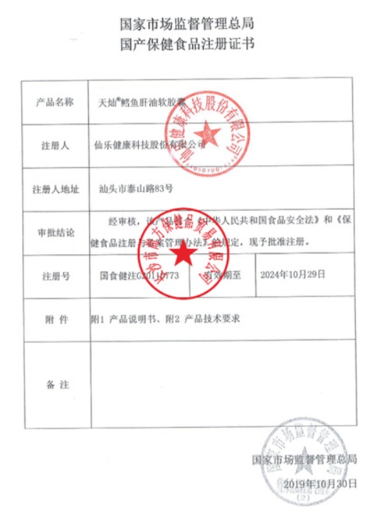 天燦鱈魚肝油軟膠囊(金康倍)保健功能:本品經(jīng)動(dòng)物實(shí)驗(yàn)評(píng)價(jià),具有增強(qiáng)免疫力的保健功能;適宜人群:免疫力低下者;不適宜人群:嬰兒、孕婦、乳母。每日1次,每次1粒;口服,或?qū)④浤z囊尾端擰斷或剪開滴加于牛奶、飲料、湯水中服用。