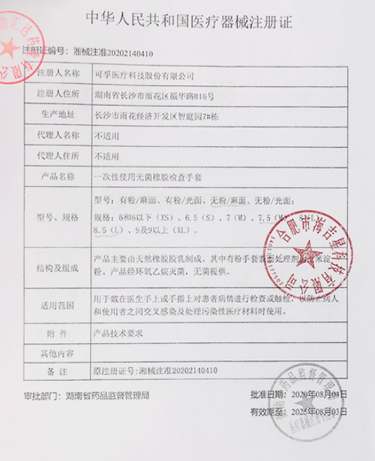 可孚一次性使用無菌橡膠檢查手套主要由天然橡膠膠乳制成。產(chǎn)品經(jīng)環(huán)氧乙烷滅菌,無菌提供。用于戴在醫(yī)生手上或手指上對患者病情進行檢查或觸檢,以防止病人和使用者之間交叉感染及處理污染性醫(yī)療材料時使用。
