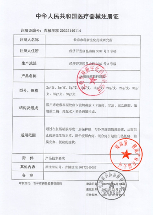 醫(yī)用痔瘡敷料凝膠(修正感喻/修潤修潔/湯臣紐特)通過在肛腸粘膜形成一層保護(hù)膜,與外界細(xì)菌物理隔離,從而阻止病原微生物定植。用于緩解內(nèi)痔、混合痔引起肛門墜脹痛、粘膜充血、便秘的癥狀。使用前拔掉給凝膠器保護(hù)帽,將凝膠涂抹于患處,每日一支,睡前或便后使用,15天為一療程。