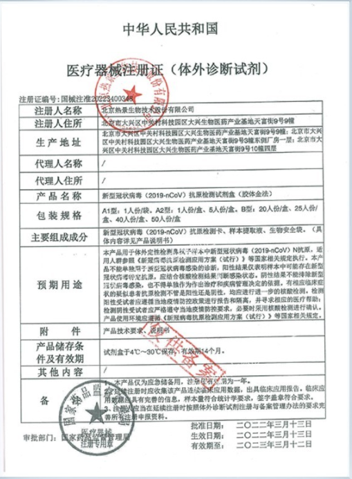 注冊證號:國械注準(zhǔn)20223400348批件 生產(chǎn)廠家:北京熱景生物技術(shù)股份有限公司