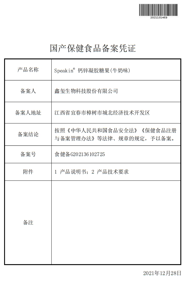 雙海Speakin®鈣鋅凝膠糖果(牛奶味)保健功能:補充鈣、鋅;適宜人群:需要補充補充鈣、鋅的4-17歲人群;不適宜人群:3歲以下人群及成人、孕婦、乳母。每日2次,每次2粒,食用方法:應充分咀嚼后服用。