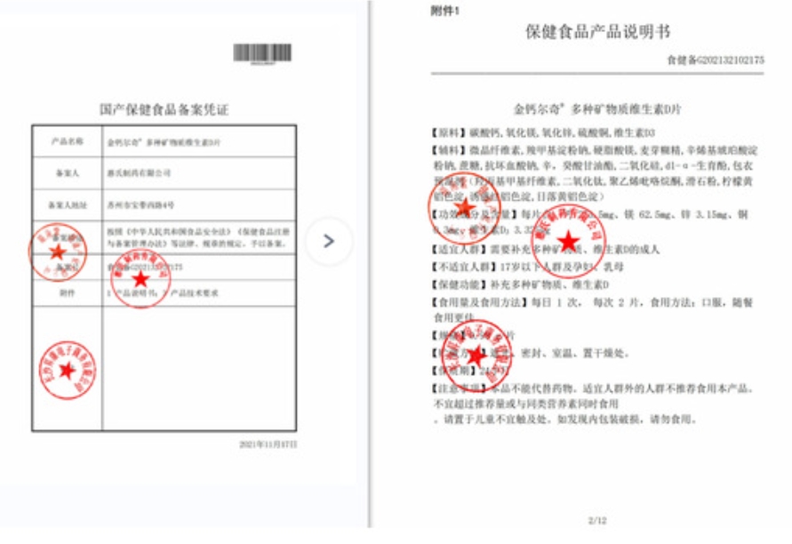 金鈣爾奇多種礦物質維生素D片保健功能:補充多種礦物質、維生素D;適宜人群:需要補充多種礦物質、維生素D的成人;不適宜人群:17歲以下人群及孕婦、乳母。