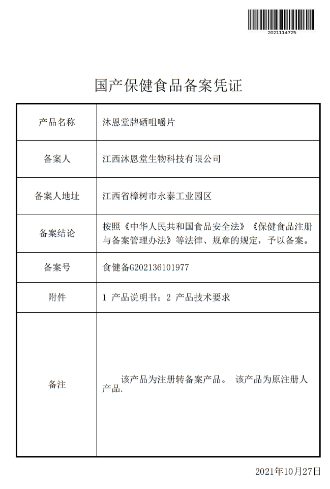 沐恩堂牌硒咀嚼片保健功能:補(bǔ)充硒;適宜人群:需要補(bǔ)充硒的成人;不適宜人群:17歲以下人群及孕婦、乳母。每日1次,每次1片,食用方法:嚼食。本品不能代替藥物。適宜人群外的人群不推薦食用本產(chǎn)品。不宜超過推薦量或與同類營養(yǎng)素同時(shí)食用;高硒地區(qū)人群不宜食用。
