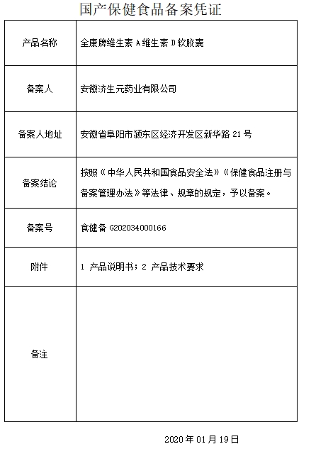 更多相關:維生素A維生素D軟膠囊 全康 全倍健 濟生元藥業(yè)