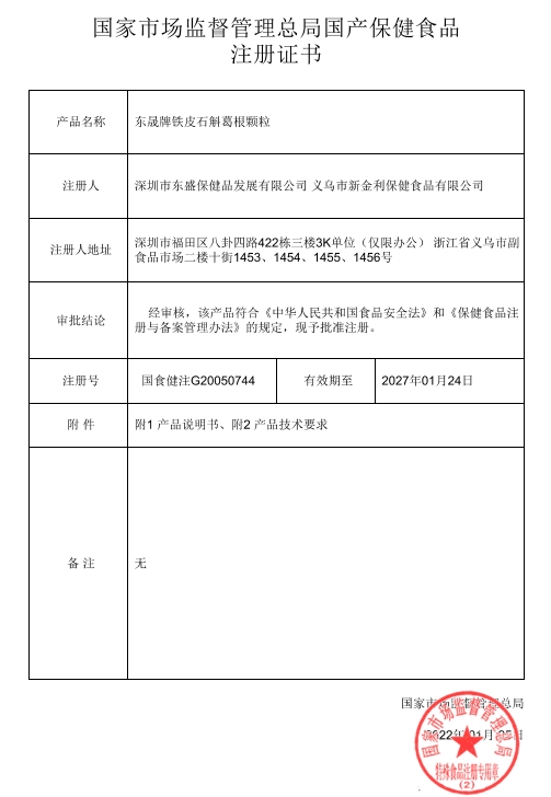 健爾馬東晟牌鐵皮石斛葛根顆粒保健功能:本品經(jīng)動(dòng)物實(shí)驗(yàn)評(píng)價(jià),具有增強(qiáng)免疫力的保健功能;適宜人群:免疫力低下者;不適宜人群:少年兒童、孕婦、乳母。每日1次,每次1袋,沖服。本品不能代替藥物。