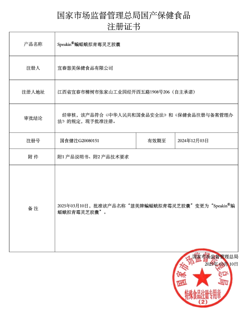 京都仁恩堂慧美牌蝙蝠蛾擬青霉靈芝膠囊保健功能:本品經(jīng)動物實驗評價,具有增強免疫力、緩解體力疲勞的保健功能;適宜人群:免疫力低下者、易疲勞者;不適宜人群:少年兒童、孕婦、乳母。每日2次,每次3粒,早晚食用。