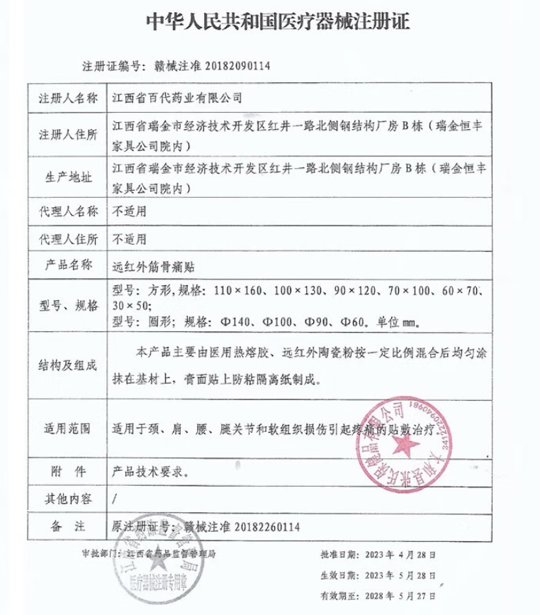 遠紅外筋骨痛貼(楊工坊/麝香壯骨膏)由醫(yī)用熱熔膠、遠紅外陶瓷粉按一定比例混合后均勻涂抹在基材上,膏面貼上防粘隔離紙制成。適用于頸、肩、腰、腿關節(jié)和軟組織損傷引起疼痛的貼敷治療。外用,揭開蓋襯,貼于清潔處,每日更換一次。