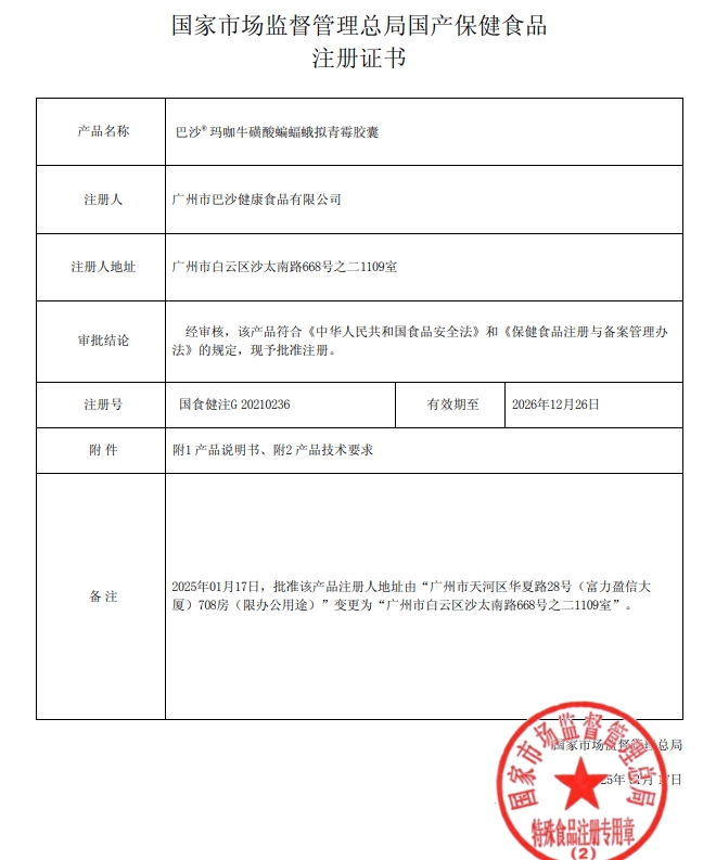 巴沙瑪咖?;撬狎鸲陻M青霉膠囊(金蒙戈)保健功能:本品經(jīng)動(dòng)物實(shí)驗(yàn)評價(jià),具有緩解體力疲勞的保健功能;適宜人群:易疲勞者;不適宜人群:少年兒童、孕婦、乳母。每日2次,每次3粒,口服。本品不能代替藥物。適宜人群外的人群不推薦食用本產(chǎn)品。