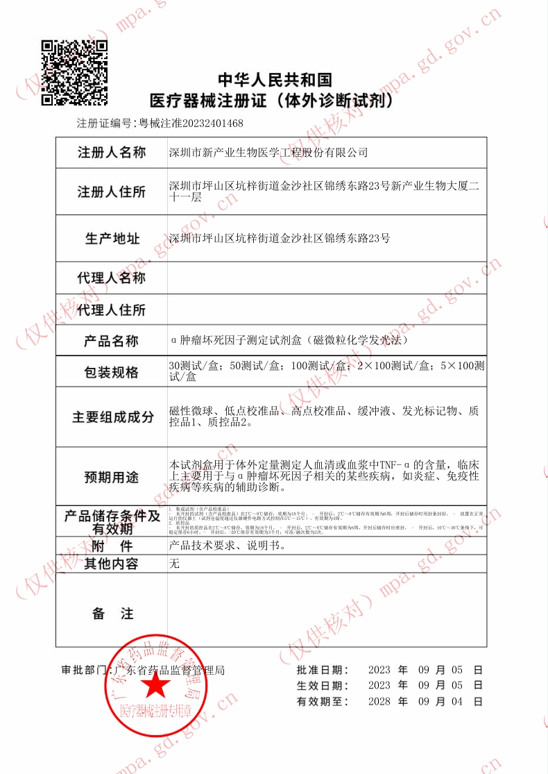 注冊證號:粵械注準20232401468批件 生產廠家:深圳市新產業(yè)生物醫(yī)學工程股份有限公司