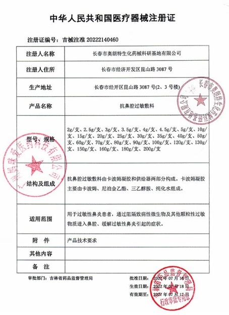 更多相關(guān):歐龍馬 抗鼻腔過敏敷料