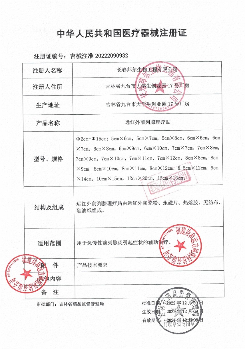 勃力神遠紅外前列腺理療貼由遠紅外陶瓷粉、永磁片、熱熔膠、無紡布、硅油紙組成。用于急慢性前列腺炎引起癥狀的輔助治療。打開包裝,取出產品揭去離型紙,貼于穴位處,每日一貼。