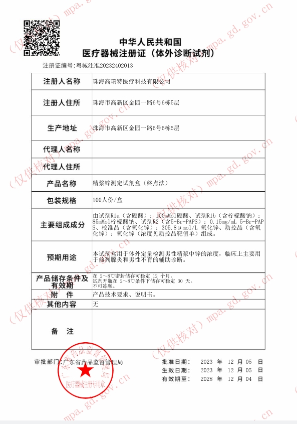 更多相關(guān):珠海高瑞特 精漿鋅測定試劑盒