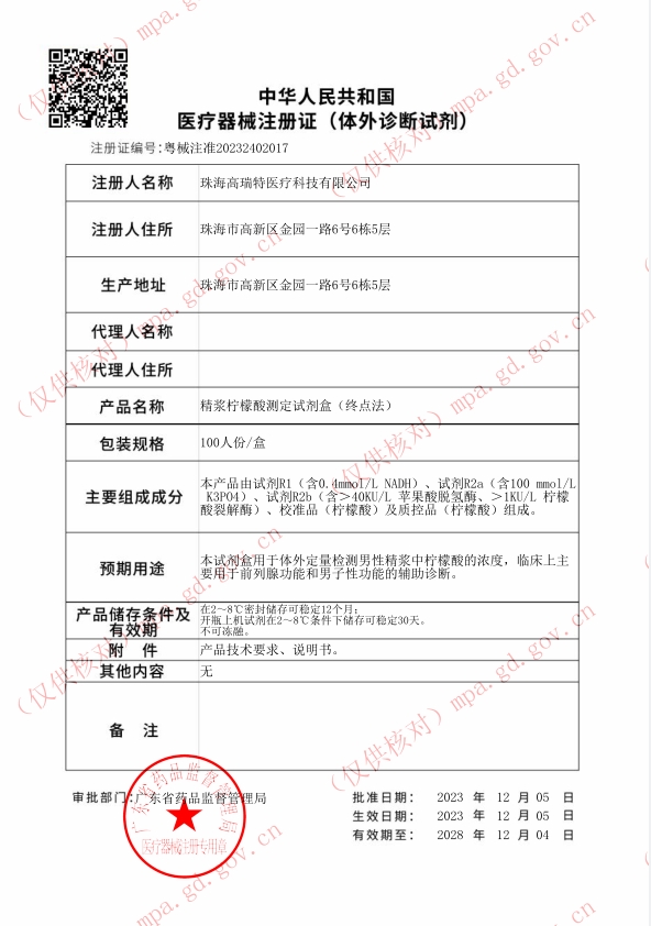 更多相關(guān):珠海高瑞特醫(yī)療科技 精漿檸檬酸測定試劑盒
