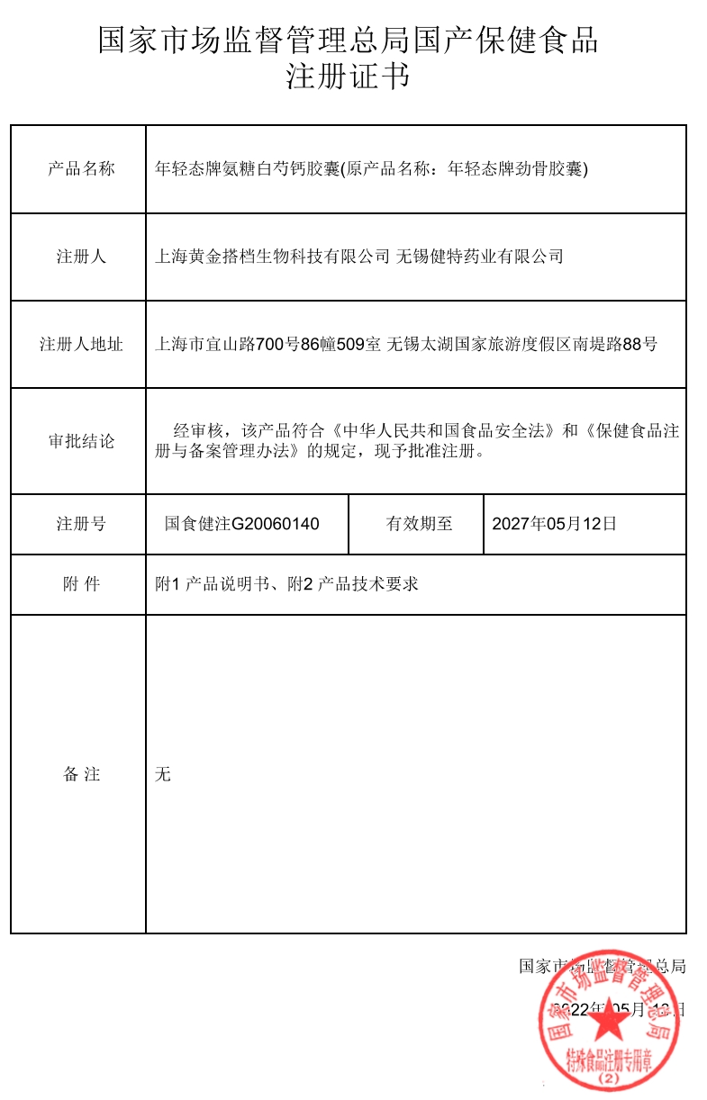 年輕態(tài)牌氨糖白芍鈣膠囊(年輕態(tài)牌勁骨膠囊)保健功能:本品經(jīng)動物實驗評價,具有增加骨密度、增強(qiáng)免疫力的保健功能;適宜人群:中老年人、免疫力低下者;不適宜人群:少年兒童、孕婦、乳母。每日2次,每次3粒,早晚餐后用溫開水送服。本品不能代替藥物。適宜人群外的人群不推薦食用本產(chǎn)品。