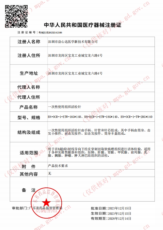 更多相關(guān):益心達(dá) 一次性使用組織活檢針