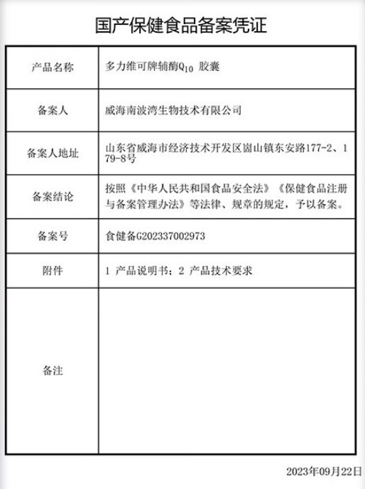 康聯(lián)星多力維可牌輔酶Q10膠囊保健功能:增強(qiáng)免疫力和抗氧化;適宜人群:成人;不適宜人群:少年兒童、孕婦、乳母、過敏體質(zhì)人群。每日1次,每次1粒;食用方法:口服,飯后溫開水送服。本品不能代替藥物;適宜人群外的人群不推薦食用本產(chǎn)品;服用治療藥物的人群食用本品時(shí)應(yīng)向醫(yī)生咨詢。