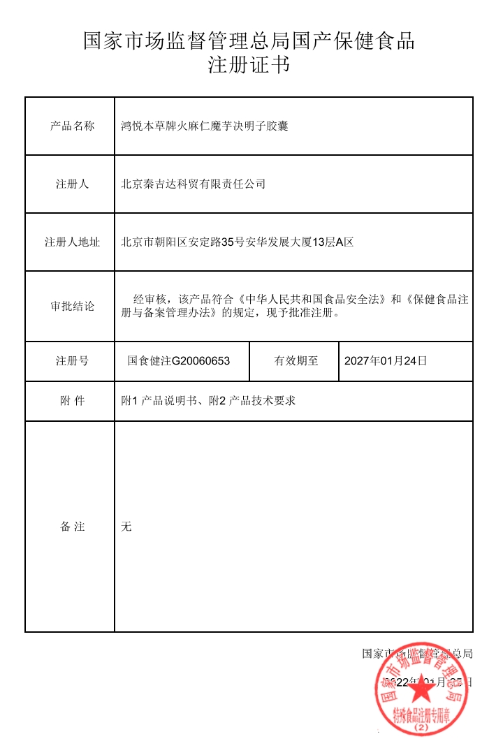 眾久鴻悅本草牌火麻仁魔芋決明子膠囊保健功能:減肥;適宜人群:單純性肥胖人群;不適宜人群:少年兒童、孕婦、乳母、慢性腹瀉者、肝功能不全者、肝病家族史者。每日2次,每次2粒,口服。食用本品后如出現(xiàn)腹瀉,請立即停止食用。