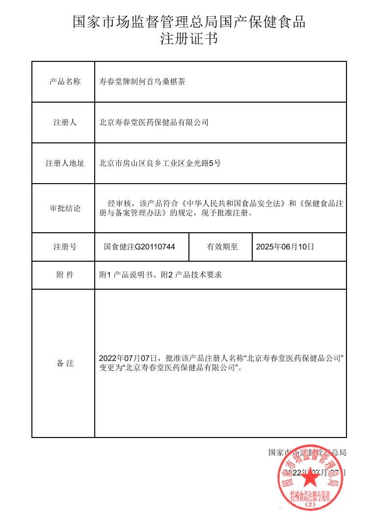 千泉壽春堂牌制何首烏桑椹茶保健功能:通便;適宜人群:便秘者;不適宜人群:少年兒童、孕婦、乳母、慢性腹瀉者、肝功能不全者、肝病家族史者。每日2次,每次1袋,熱水泡服。本品含何首烏,不宜長期超量服用,避免與肝毒性藥物同時使用,注意監(jiān)測肝功能,也不能代替藥物;食用本品出現(xiàn)腹瀉者,請立即停止食用。