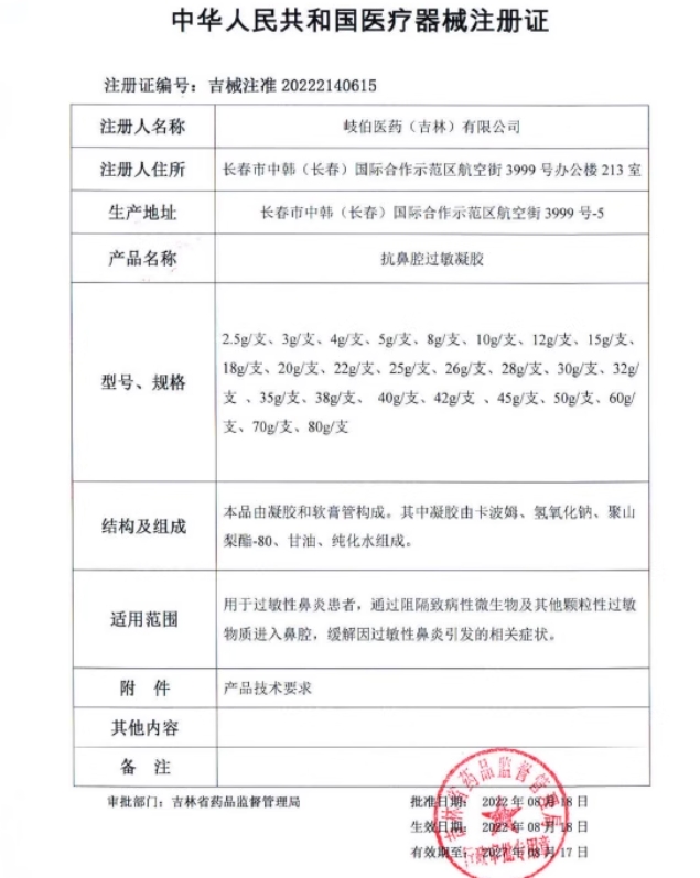 特一抗鼻腔過(guò)敏凝膠由凝膠和軟膏管構(gòu)成。其中凝膠由卡波姆、氫氧化鈉、聚山梨酯-80、甘油、純化水組成。用于過(guò)敏性鼻炎患者,通過(guò)阻隔致病性微生物及其他顆粒性過(guò)敏物質(zhì)進(jìn)入鼻腔,緩解因過(guò)敏性鼻炎引發(fā)的相關(guān)癥狀。