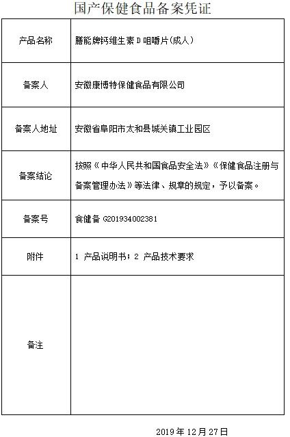 華北制藥膳能牌鈣維生素D咀嚼片(成人)保健功能:補(bǔ)充補(bǔ)充鈣、維生素D;適宜人群:需要補(bǔ)充補(bǔ)充鈣、維生素D3的成人;不適宜人群:3歲以下人群及孕婦、乳母。每日1次,每次2片,食用方法:咀嚼食用。