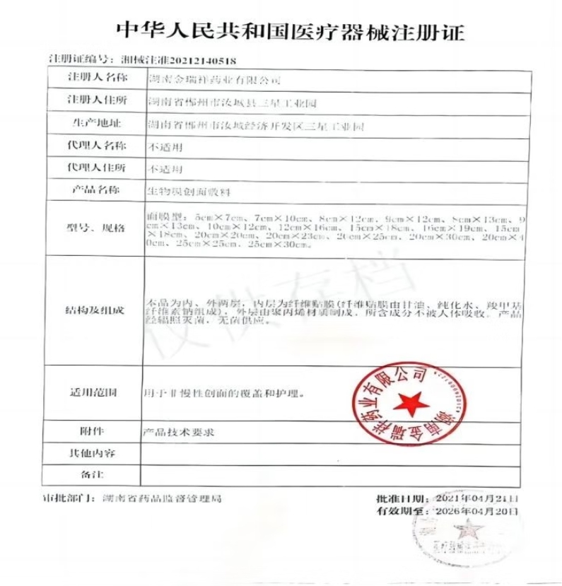 中華老字號生物膜創(chuàng)面敷料為內(nèi)、外兩層,內(nèi)層為纖維貼膜(纖維貼膜由甘油、純化水、羧甲基纖維素鈉組成),外層由聚丙烯材質(zhì)制成。所含成分不被人體吸收。產(chǎn)品經(jīng)輻照滅菌,無菌供應(yīng)。用于非慢性創(chuàng)面的覆蓋和護理。
